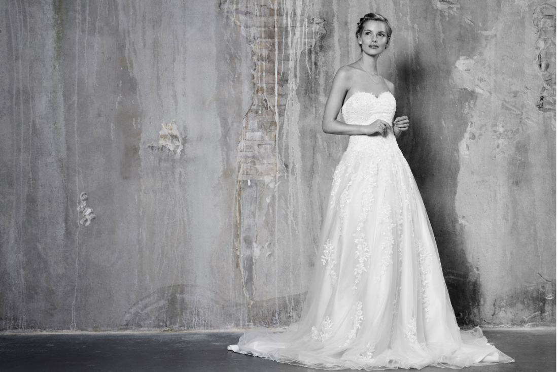 Stella York gown 7941, $1,729, at Claire’s Fashions, Wilmington, Delaware.